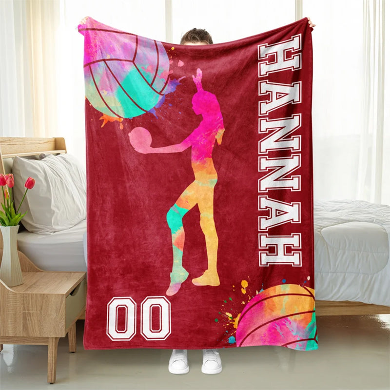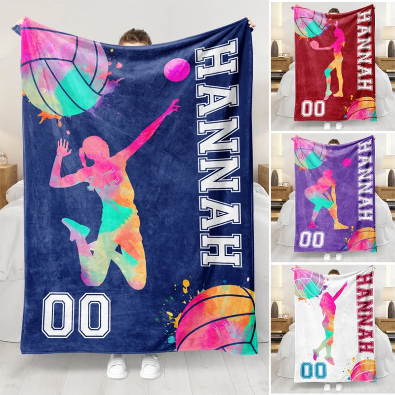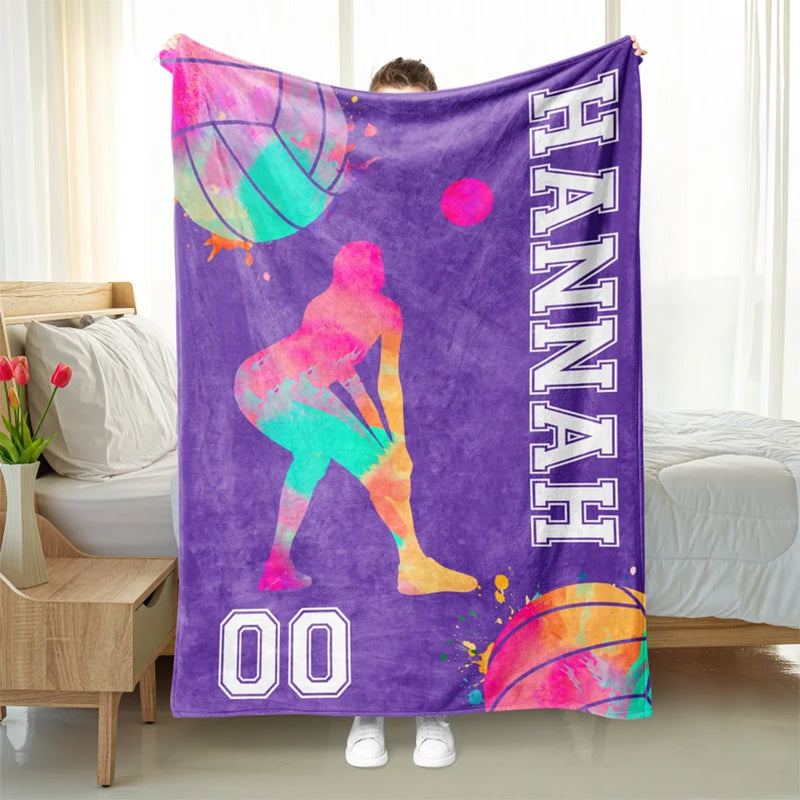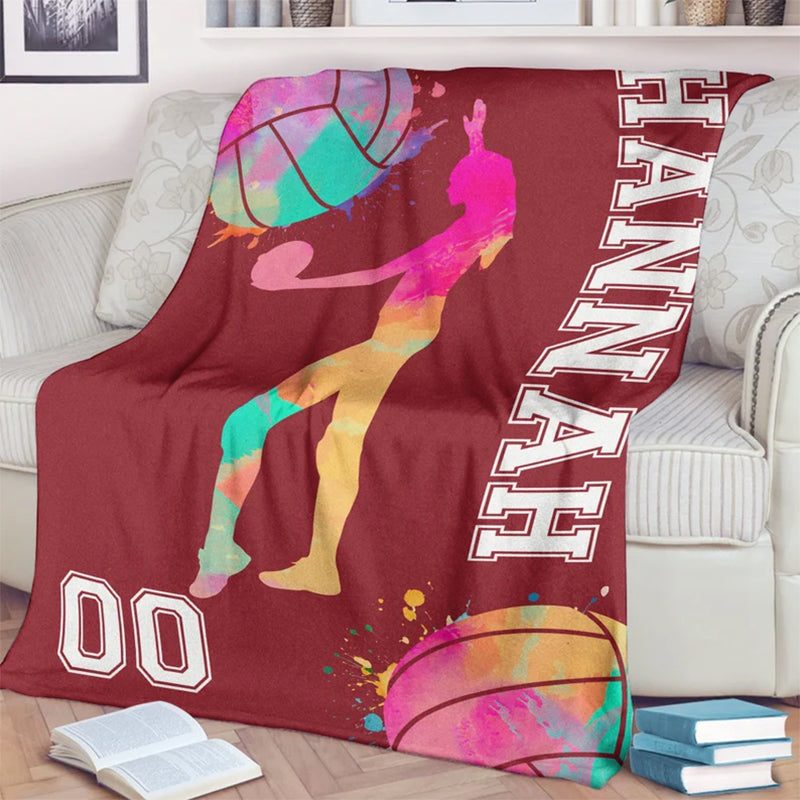 Personalized Volleyball Blanket - Custom Name Watercolor Design Volleyball