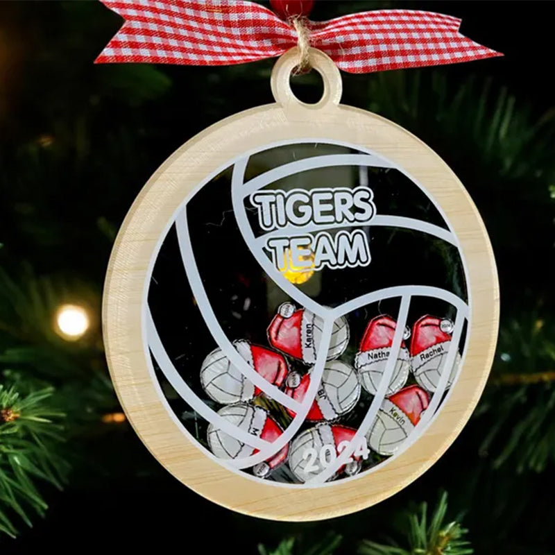 Celebrate your volleyball team with our Christmas Volleyball Shaped Shaker. This distinctive ornament features a fun volleyball design and is personalized with the team member’s name, adding a unique touch to your holiday decor.