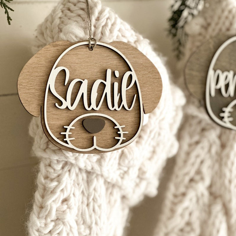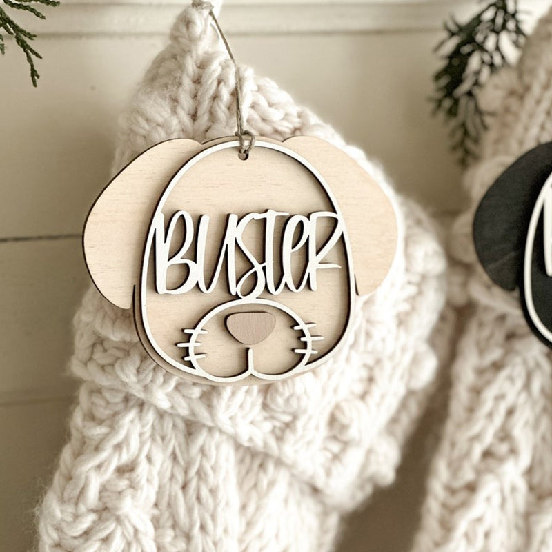 Personalize your dog’s stocking with one of our wood tags custom made with your best friend’s name.