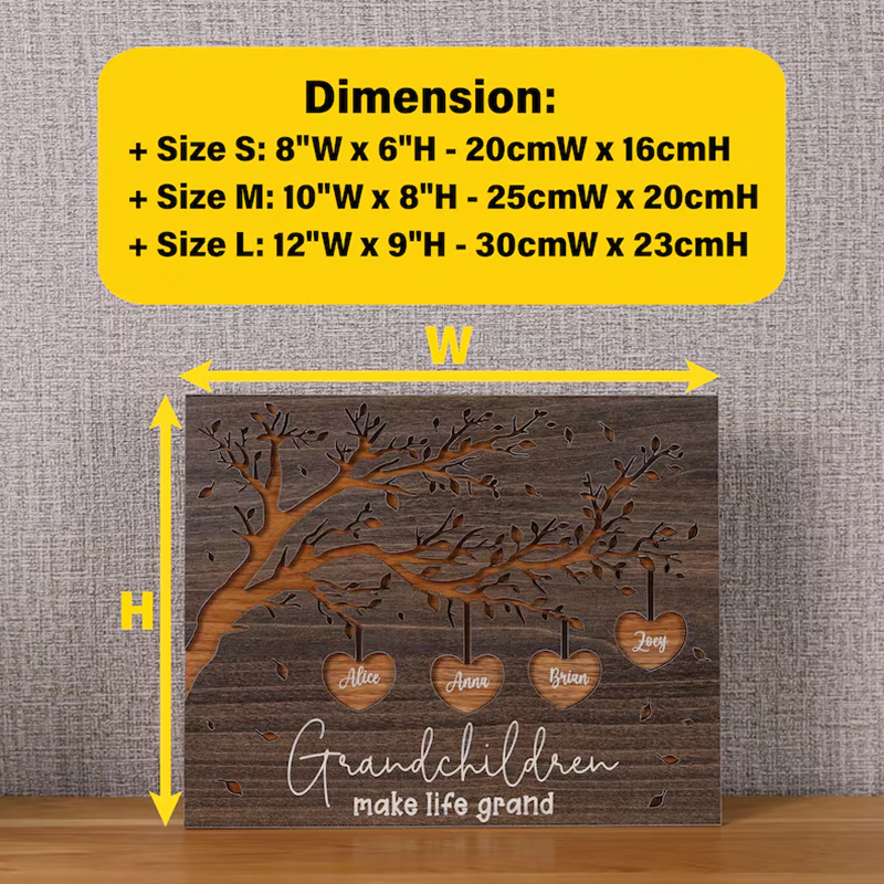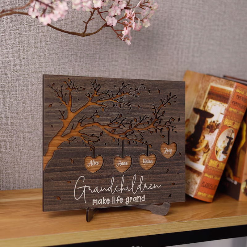 Personalized Wooden Sign for Grandparents, Gift from Grandkids, Grandchildren Names with Family Tree Plaque, Grandma Gifts, Gift for Grandpa