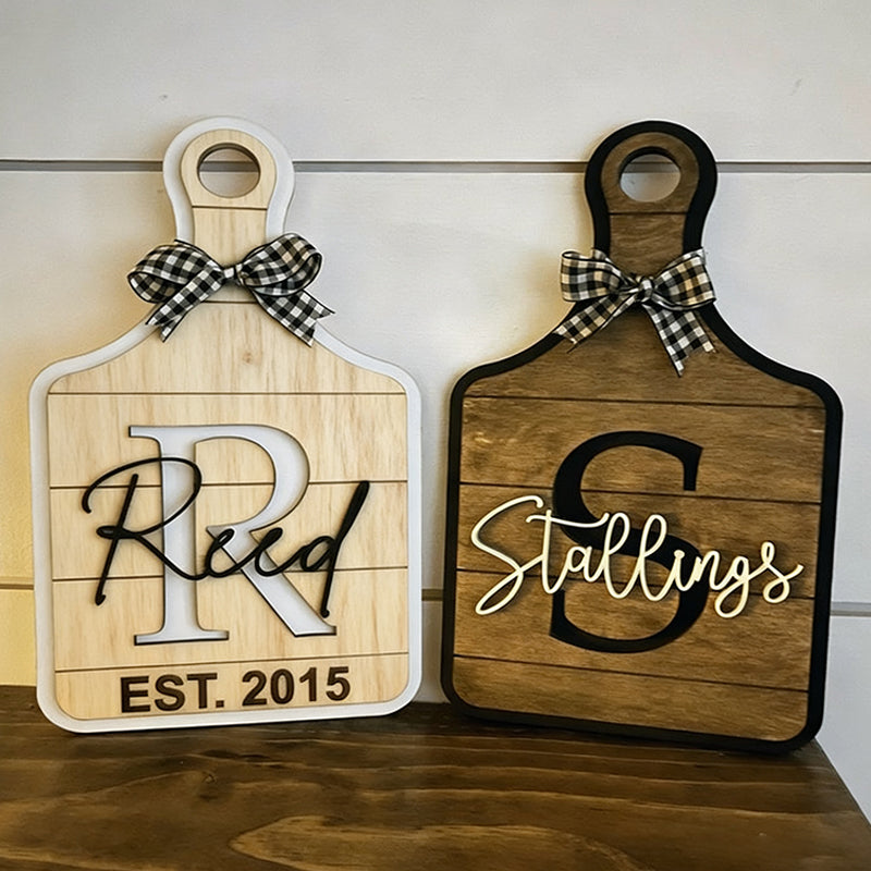 Made from locally sourced wood, these products are designed, laser cut/engraved and stained/painted to provide beautiful finished decorative pieces for your home.