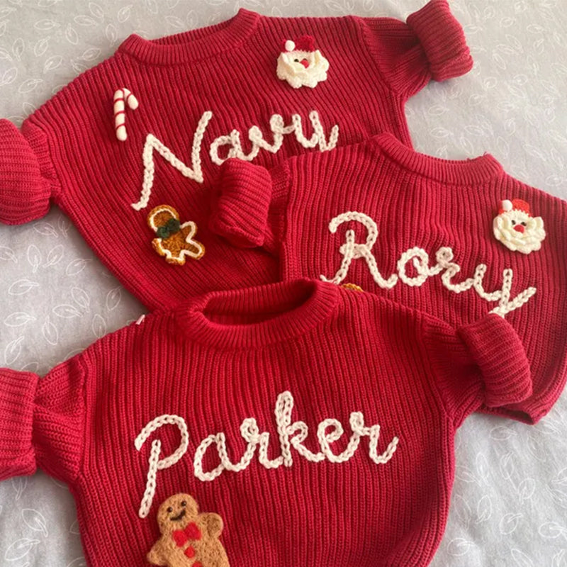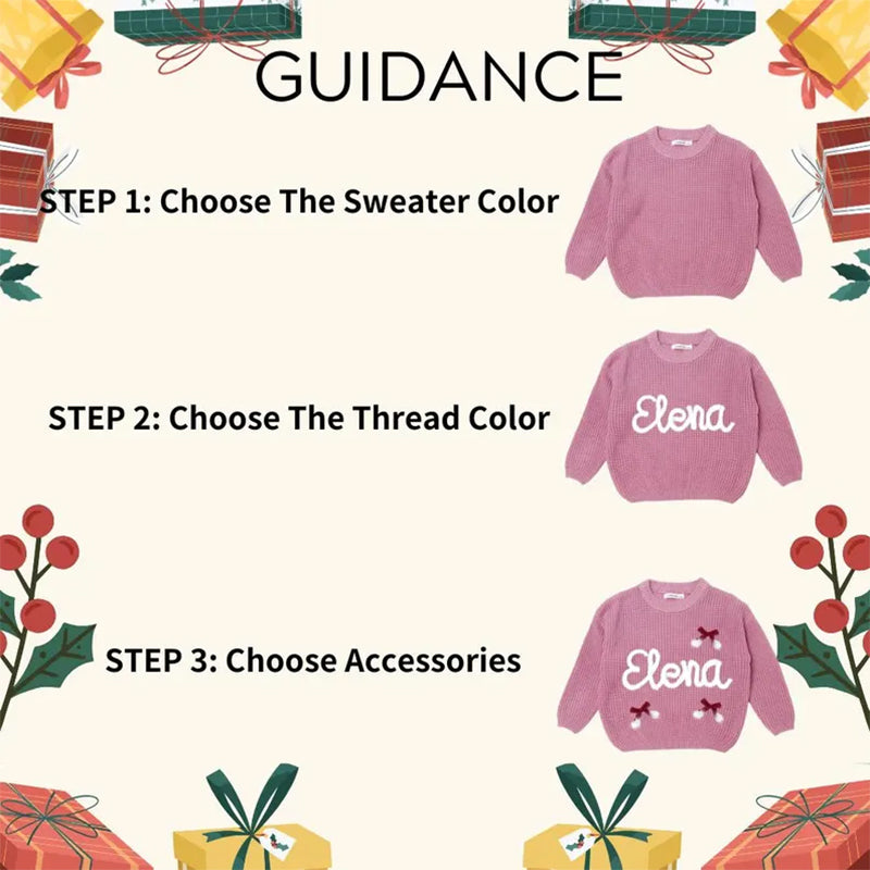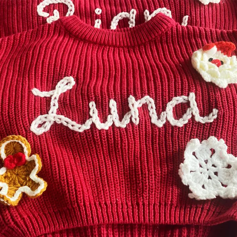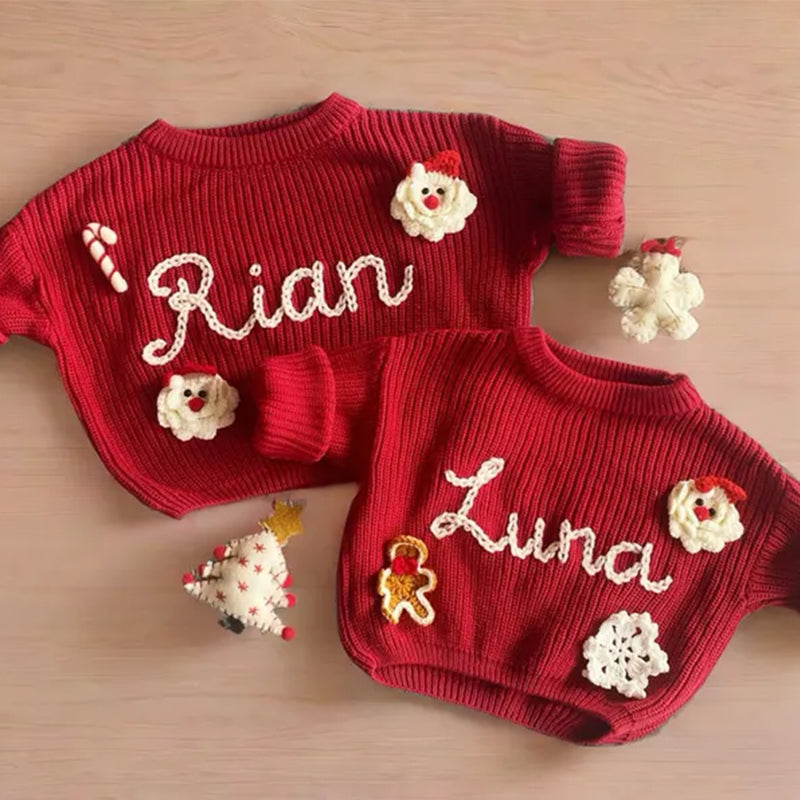 Personalized Name Embroidery: Make this Christmas outfit truly unique by adding your baby’s name! We’ll stitch the name onto the sweater using beautiful embroidery, creating a one-of-a-kind piece for your little one. ✨
