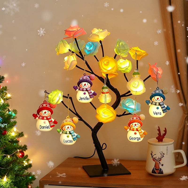 Custom Family Christmas Decoration, Personalized Snowman Figurine Set with LED Lights