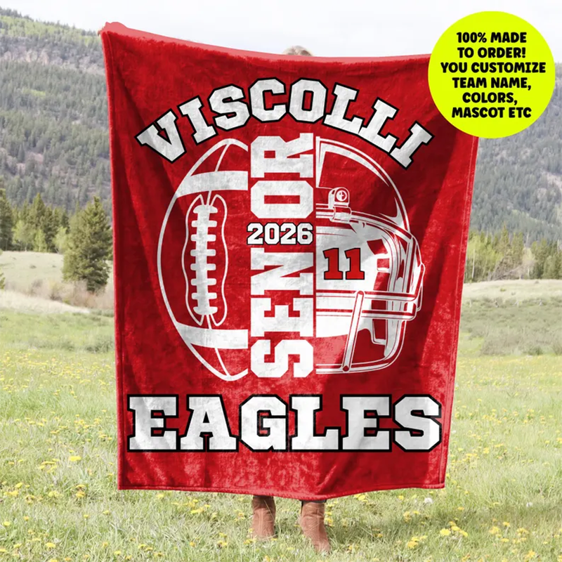 Senior Football Player Gift, Personalized Football Blanket With Name