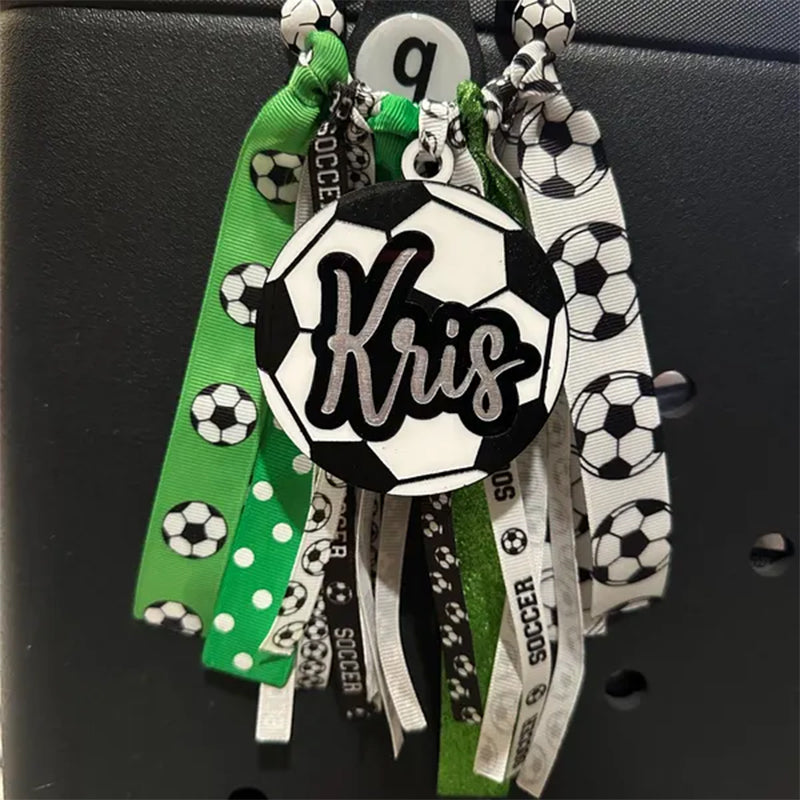 Football Softball Baseball Soccer Basket Bag Tassel and Charm, Bookbag tag