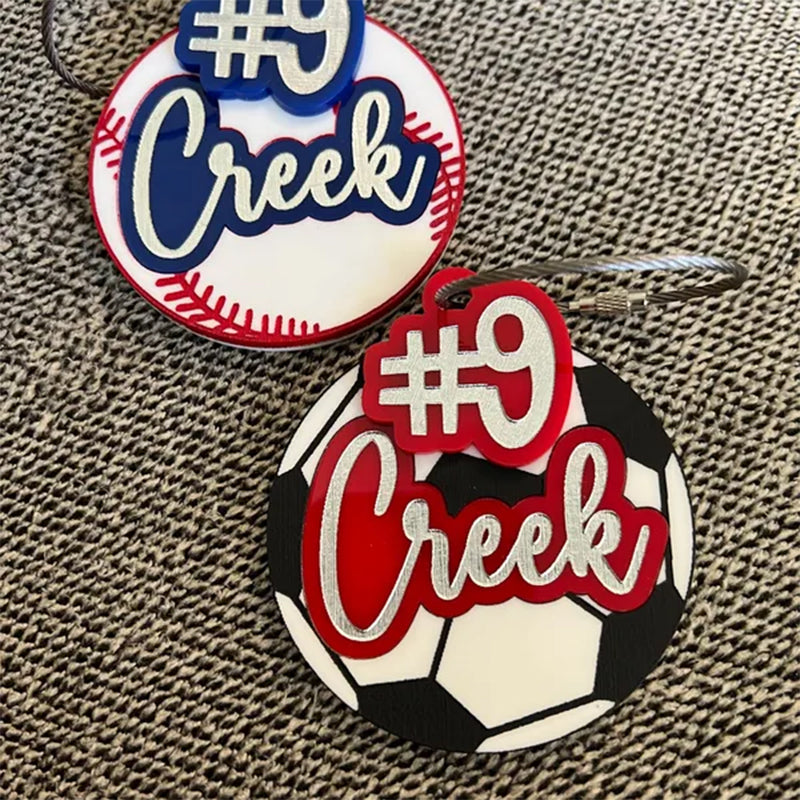 Customize a keychain for your keys or bag for your sports team! Numbers are interchangeable in case it happens to change year to year! Price listed is for single tag.