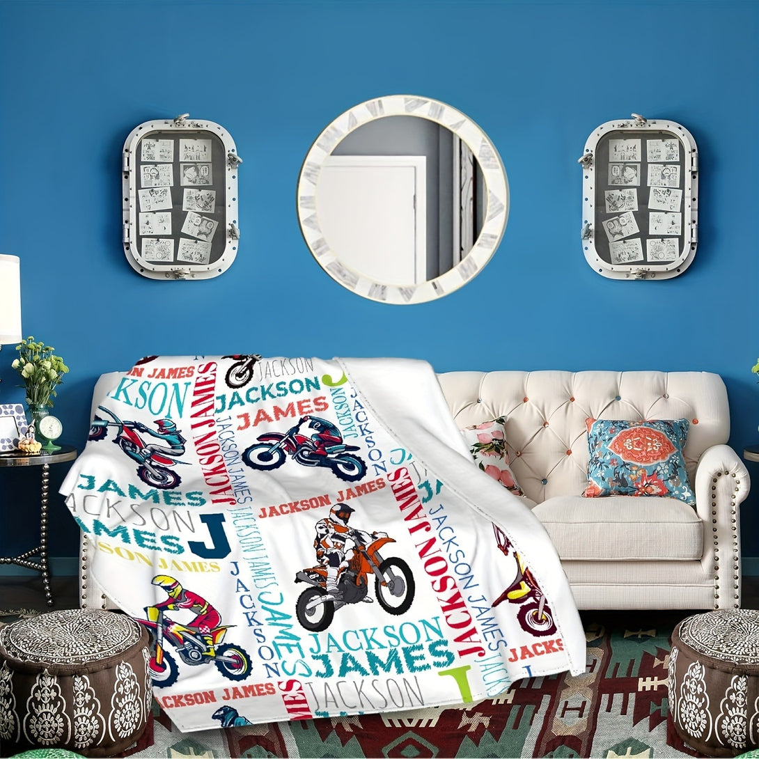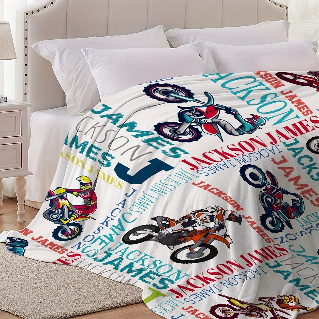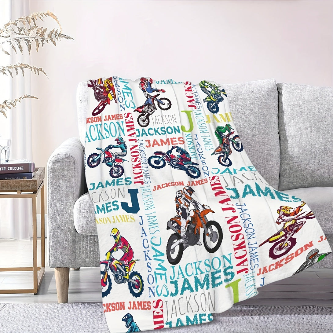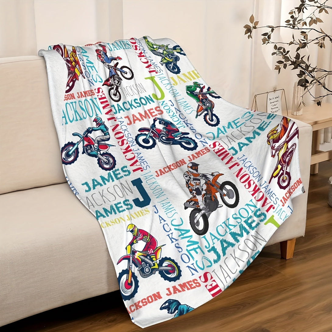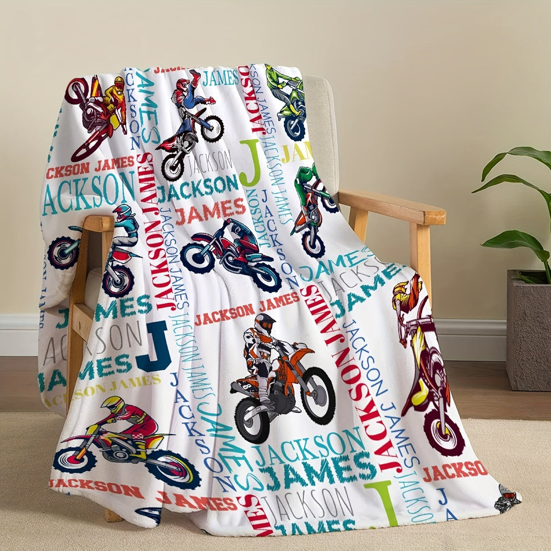 Text Customized Motorcycle Print Fleece Blanket