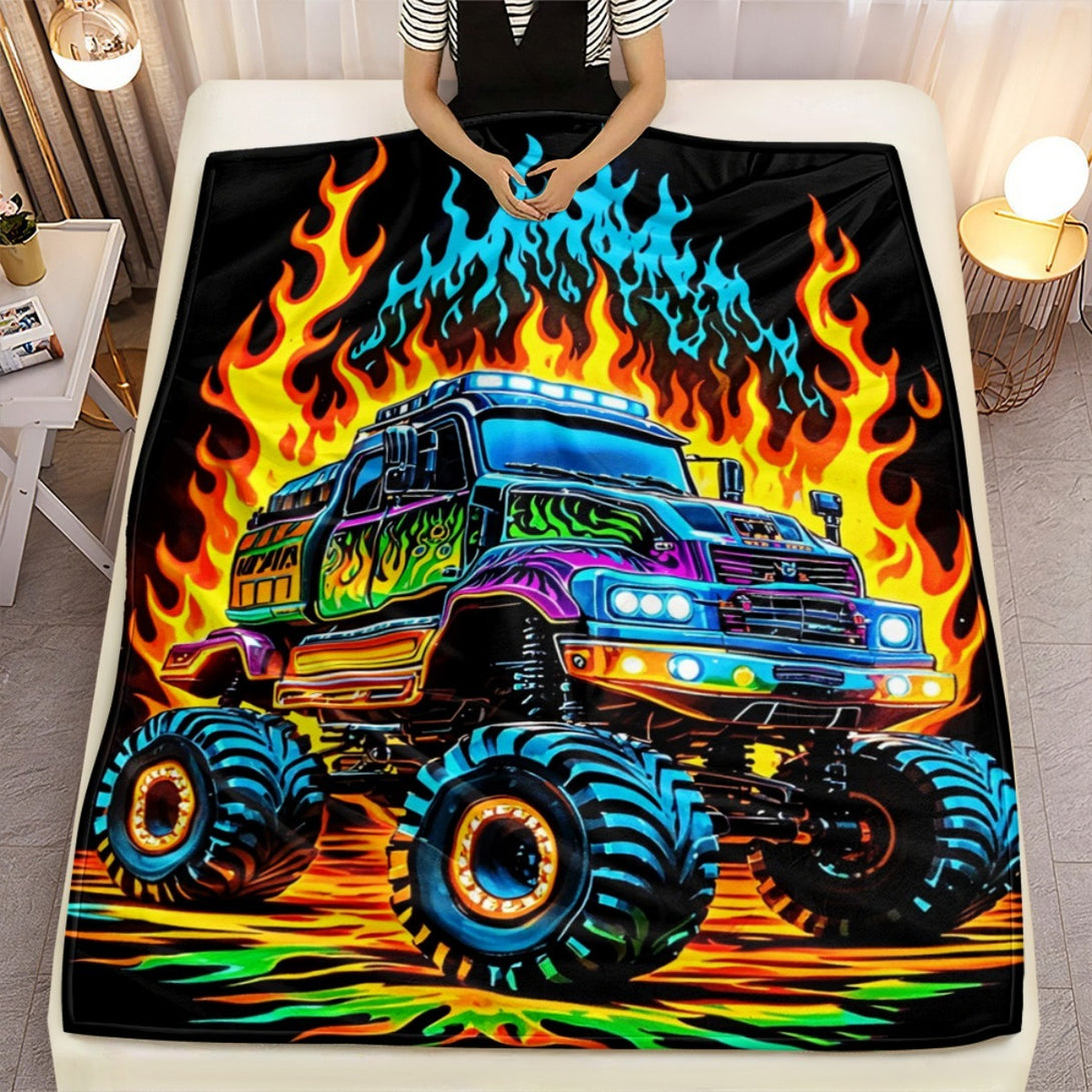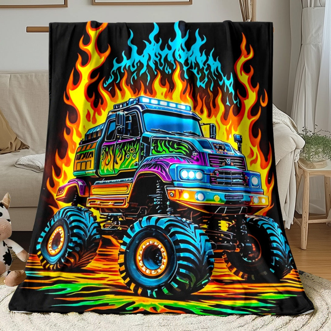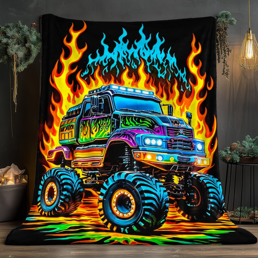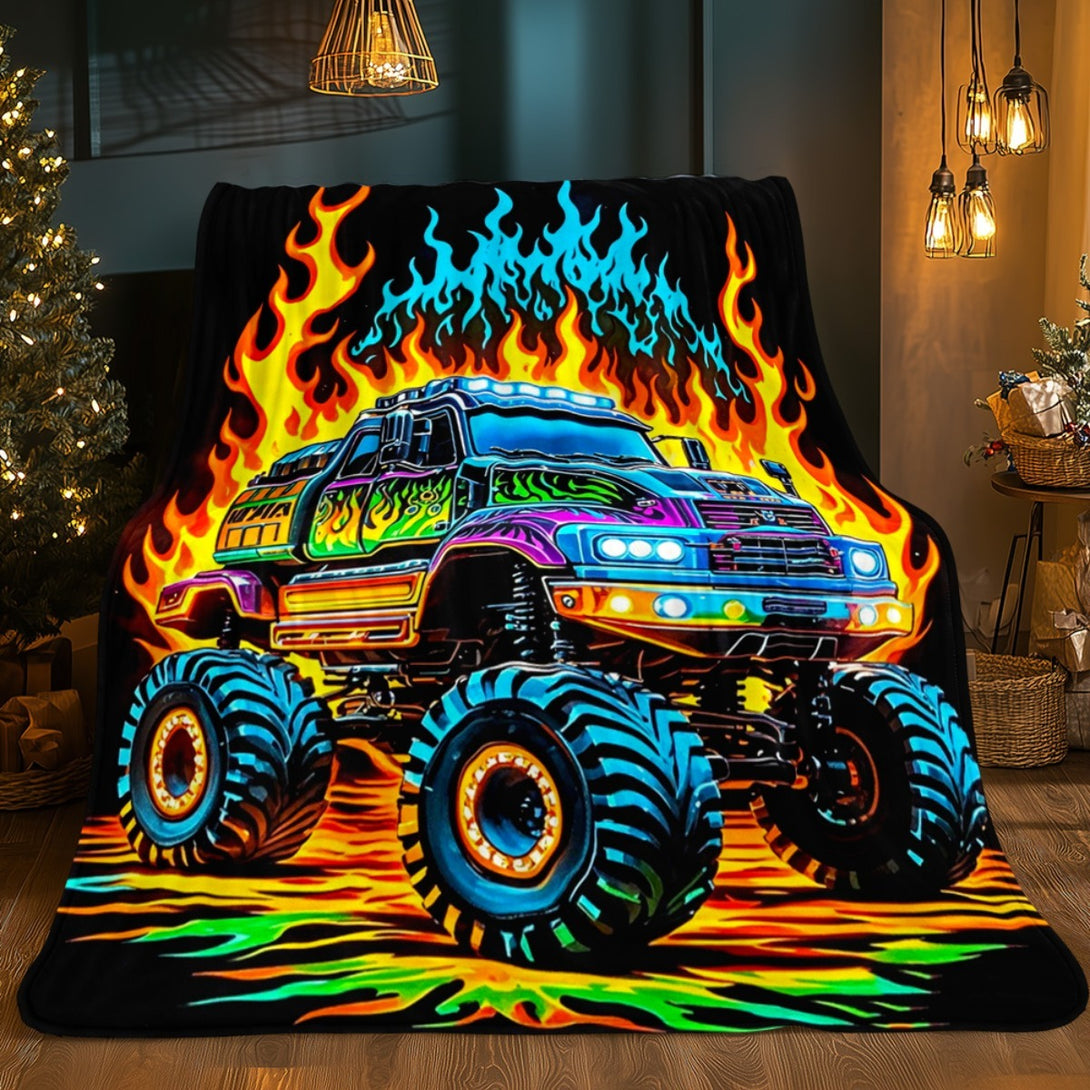 Truck Flame Neon Glow-in-the-Dark Printed Flannel Blanket