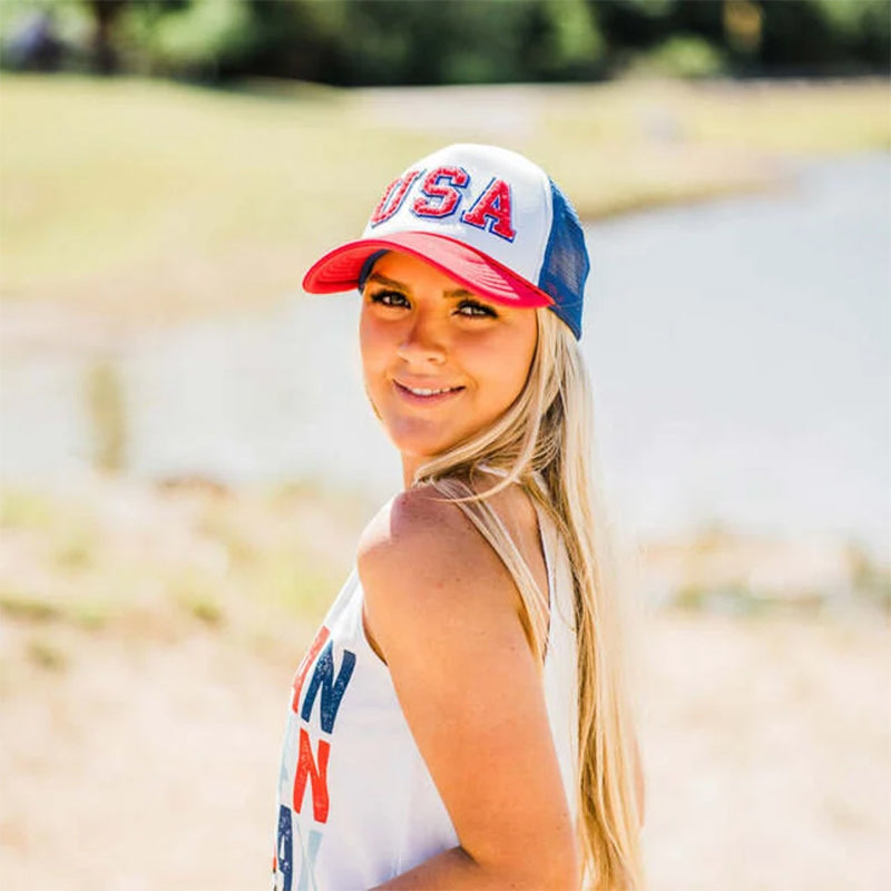 We are in love with this stylish chenille patch trucker hat! From a night in the backyard to a day at the beach, this soft and lightweight hat is so easy to pair with any outfit! This hat features a trendy chenille patch with mesh on the sides and back for a breezy look this Independence Day!