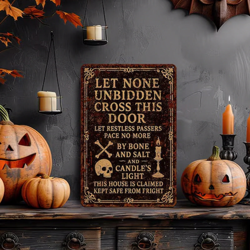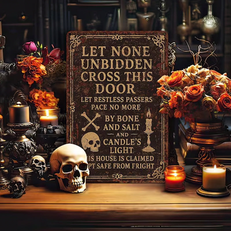 Perfect for entryways, haunted mantels, or altars, this sign sets the tone for a home that’s not just decorated—but defended.