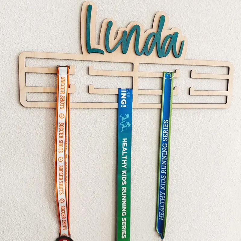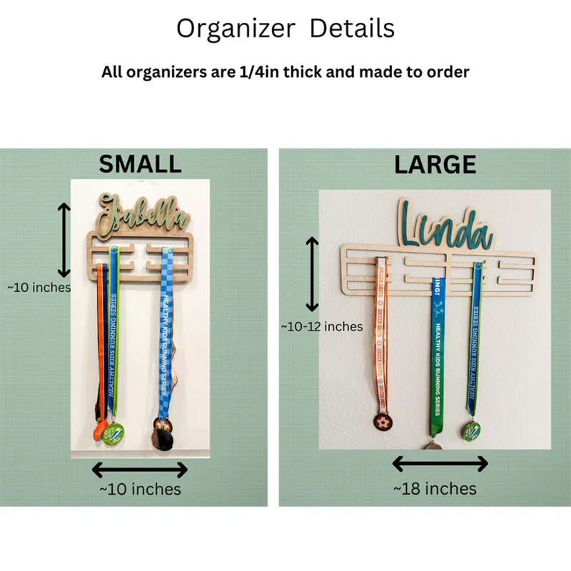 Need a personalized gift for your athlete? This is the perfect way to help organize the hanging medals and awards from their competitions.
